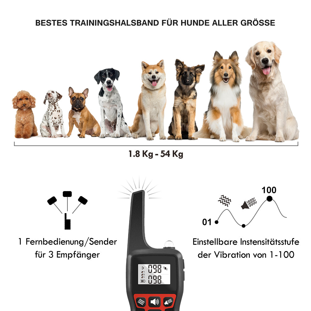 EIn Ferntrainer der auch hält was er verspricht. Ich hatte schon einige aber der ist wirklich gut. Lieferung war schnell. Das teil ist super. Geht auch easy für beide meiner Hunde. Qualität ist gut. Preis Leistung ist sehr gut. Daumen hoch.
